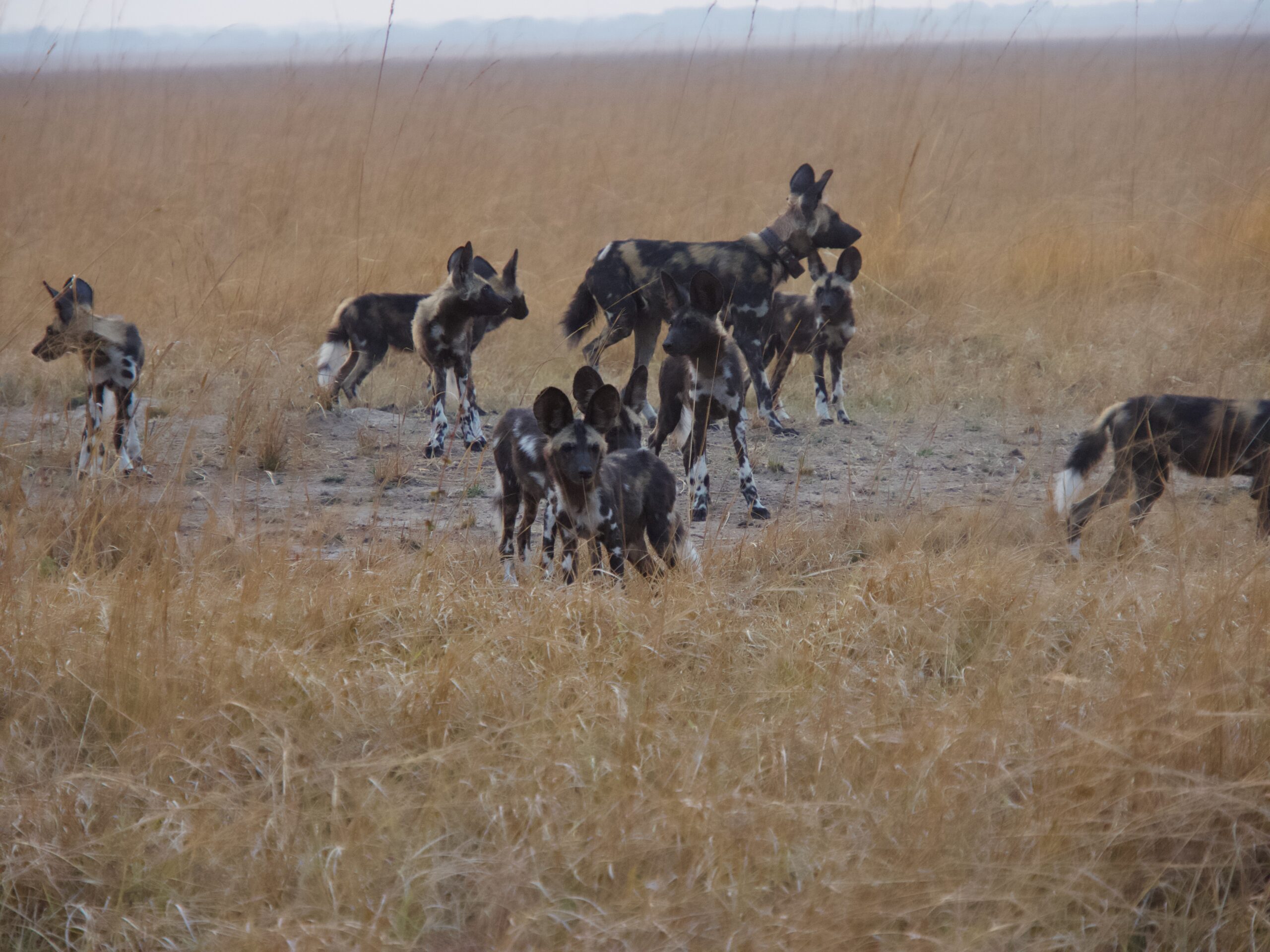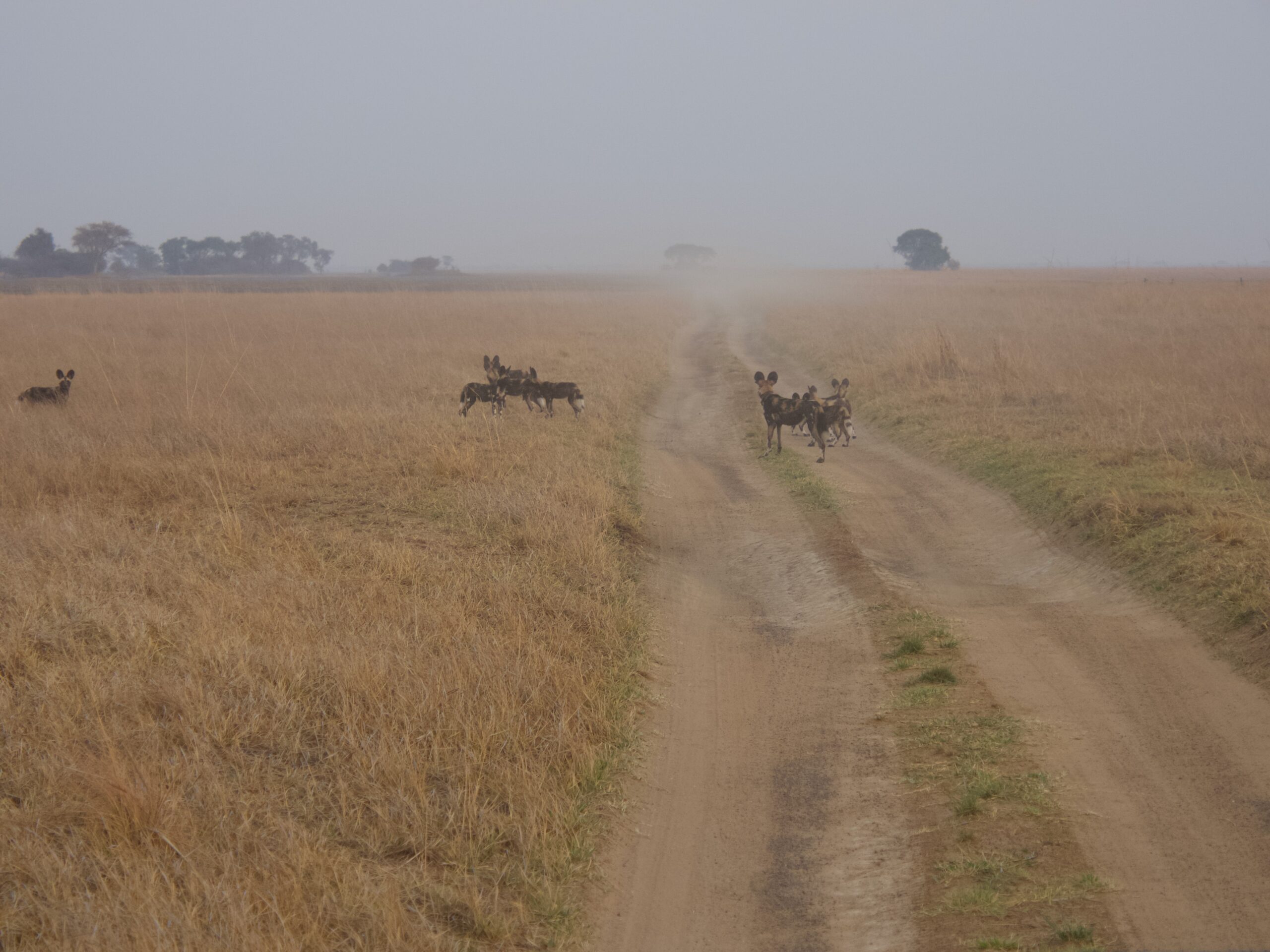 It is always a very early start on safari as the animals try to get into shade when the temperature rises. In Busanga at this time of year by 10am it was getting uncomfortably hot. When we set out on this morning there was a mist. It didn’t last long once the sun broke through but it was briefly quite ethereal. We went in search of the wild dogs we had encountered the evening before. You have to take every opportunity when a pack is in the area because they will move on and there is no knowing when, or even if, they will be back. They can travel huge distances in a single day. I have been very lucky on my trips to encounter several different packs in various countries and game parks. Many people never ever see them no matter how many trips they do.