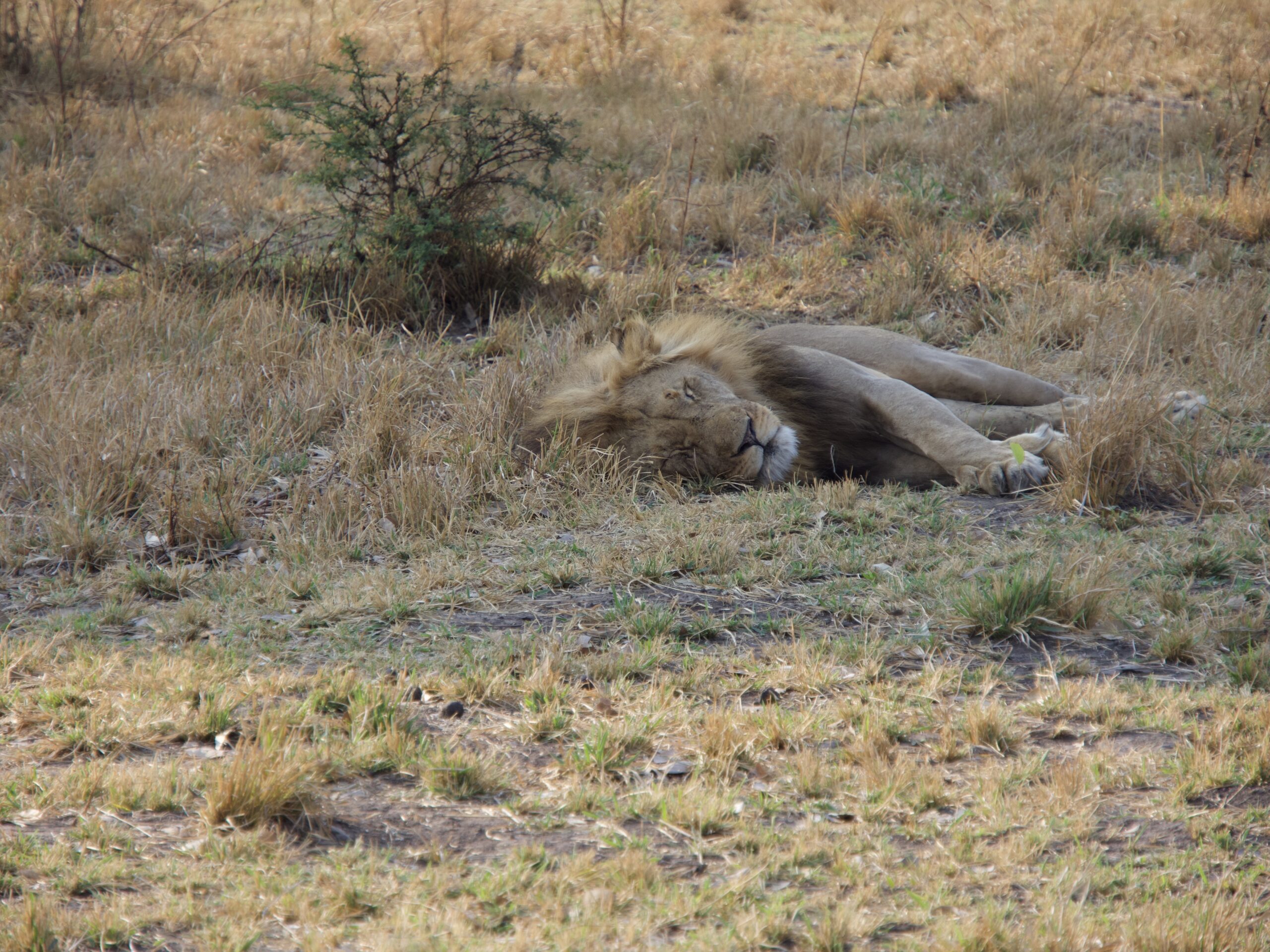 While we were out we saw a school bus full of children. Later on we saw that it had stopped so we knew they were watching something. When they moved on we drove over and found a sleeping lion. It is amazing how undisturbed he was. He was known to the guide as Adam.