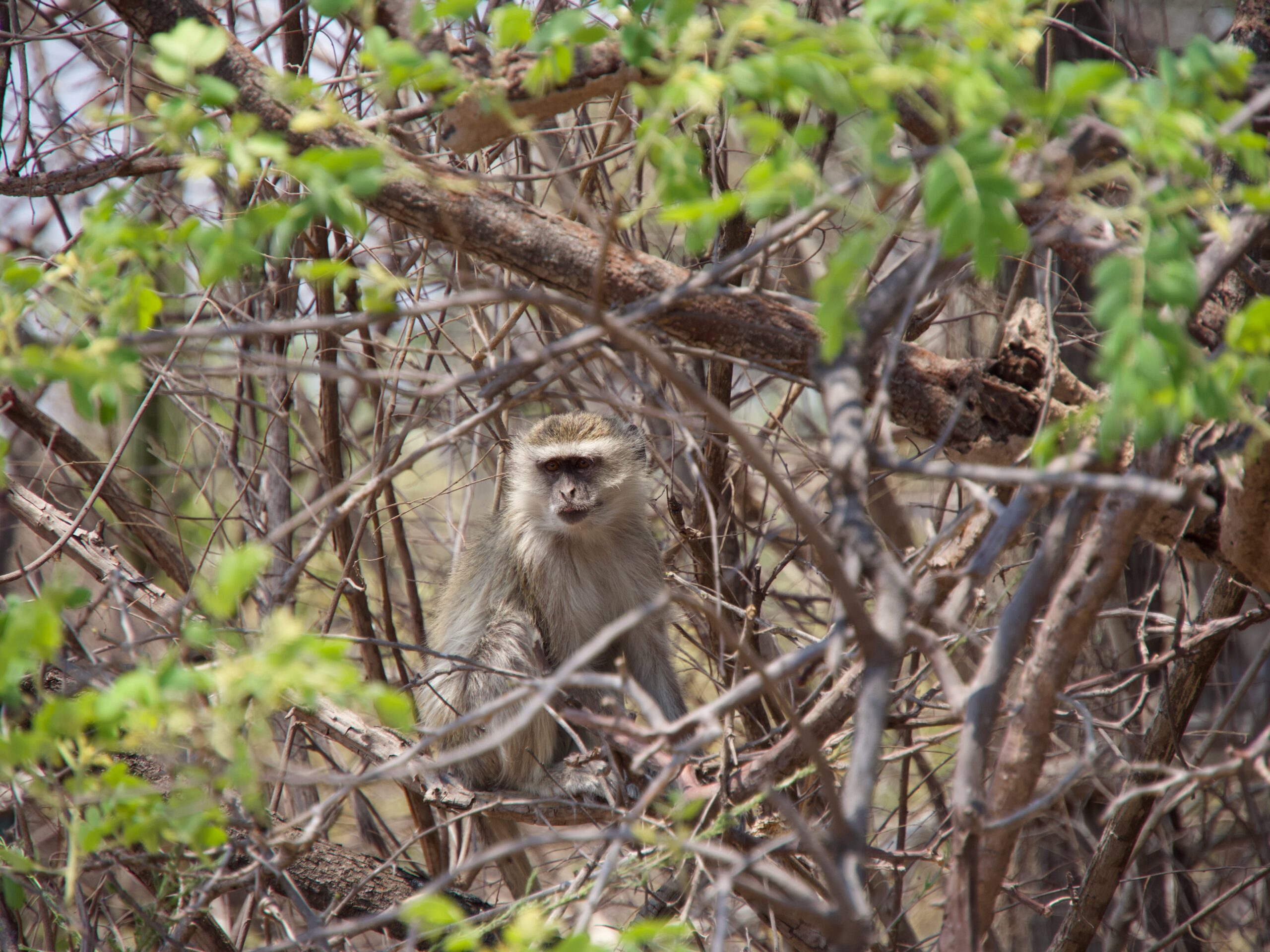 We too headed back to the cool of the camp. But you never know what you will see and as we approached the camp there were monkeys in the trees.